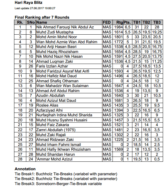 Keputusan rasmi boleh check di chess result